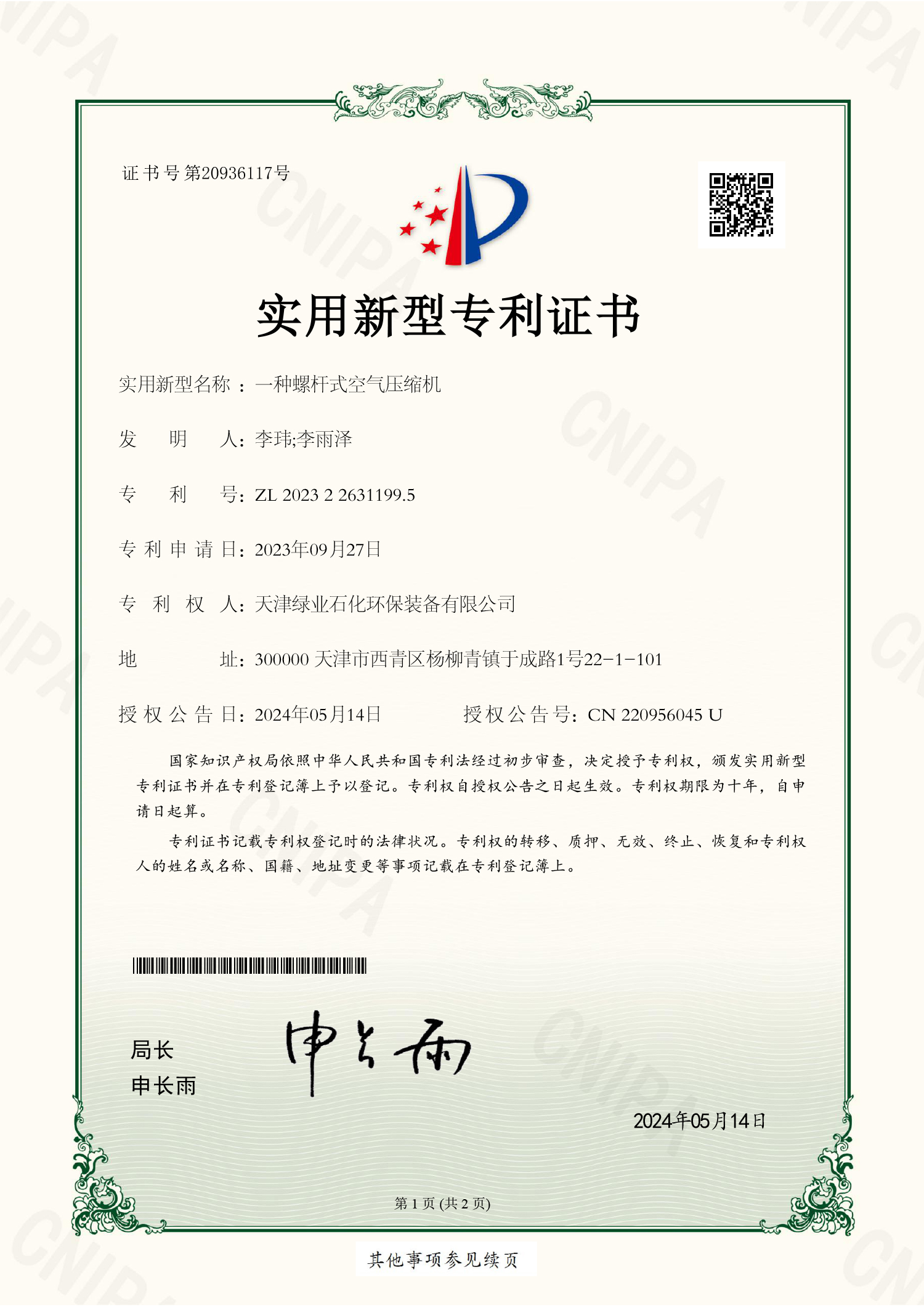 车载平台专利证书